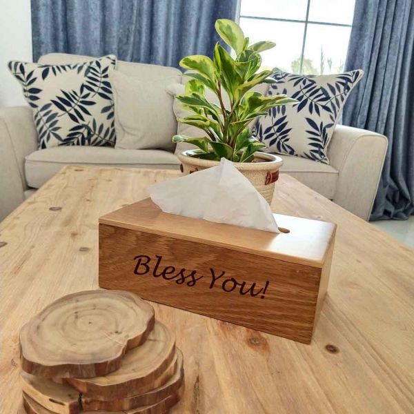 Make your living or desk space match with the rest of your accessories. Customize this tissue box by choosing the color as well as an engraving! Great for the home or office.