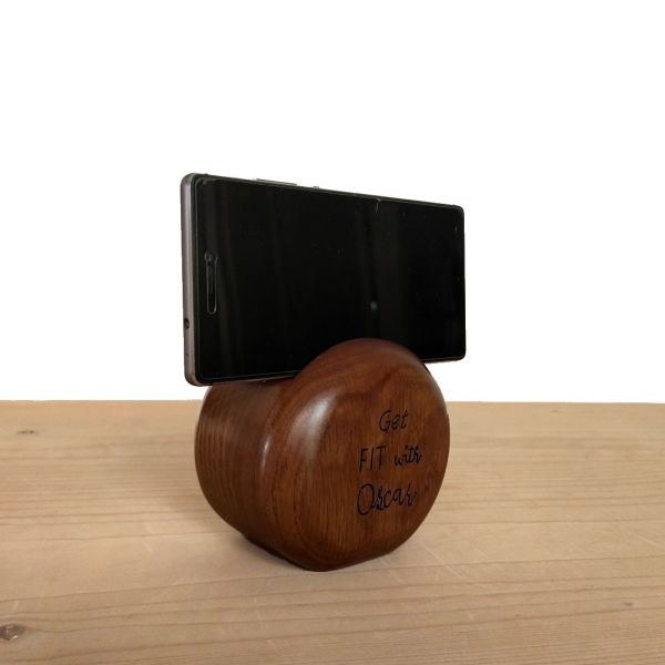With 2 slits on either side of the handle on top, you can have 2 phones, 2 tablets, or 1 of each taking videos or pictures at the same time. This piece is made-to-order. It's color may be customized according to the last image in the listing. An optional English or Arabic engraving is possible on both sides. With 2 slits on either side of the handle on top, you can take videos or pictures in opposite directions at the same time. Made of solid wood, this item is designed and hand-crafted in the UAE using sustainably sourced timber.