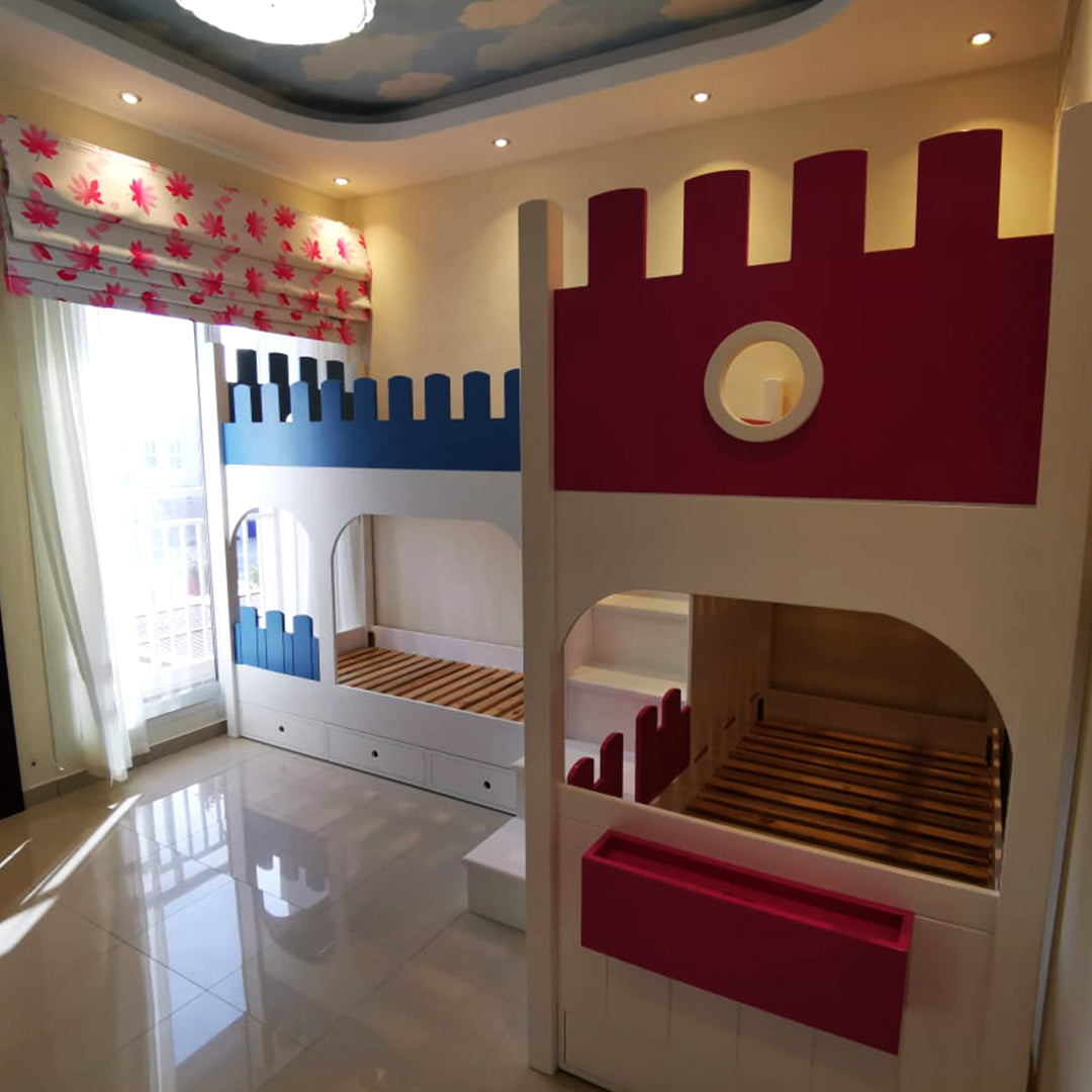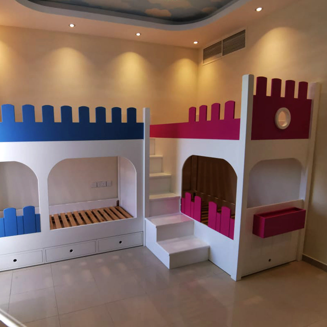 4 beds in the shape of a castle