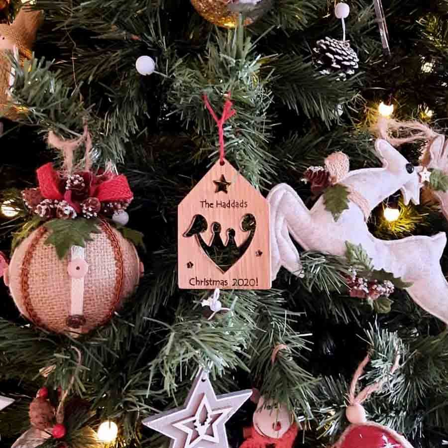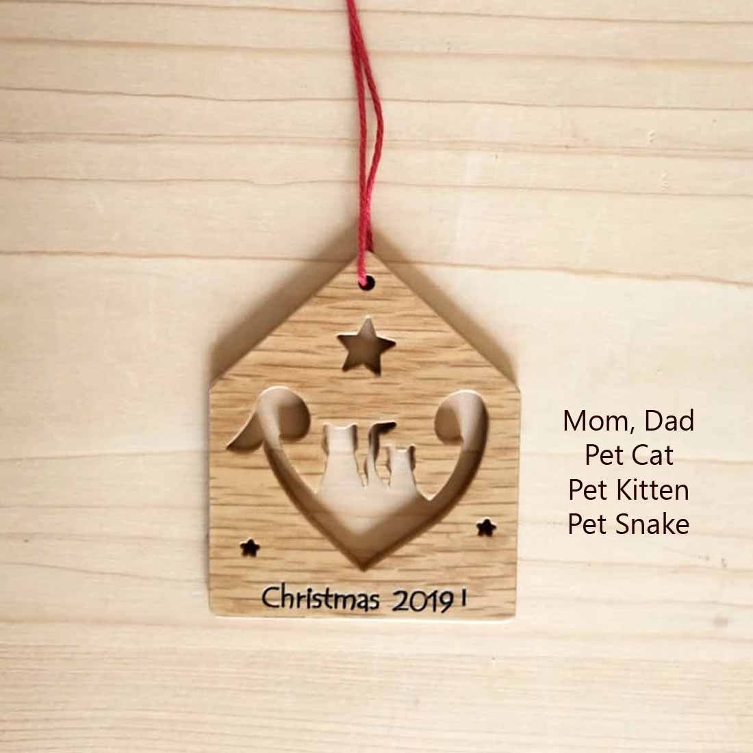 A beautiful Christmas ornament to hang on the family tree year after year. Document a family's first Christmas or your family with it's current members - including baby bumps and pets! This design makes a meaningful gift to oneself and to others.