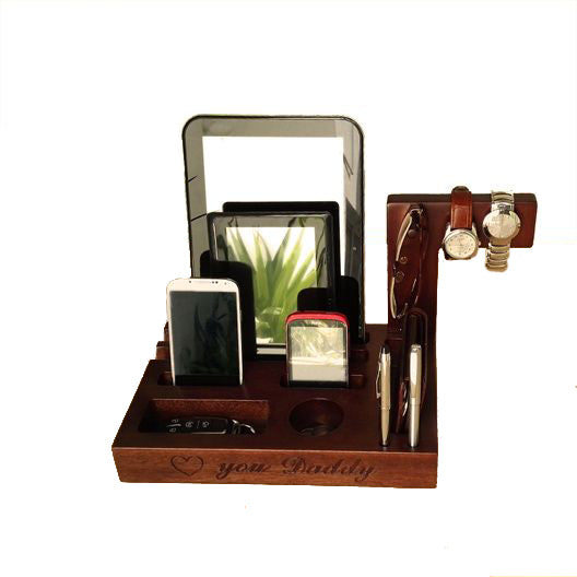 The most useful desk organizer a guy can own! A manly piece that de-clutters the work space and displays everyday office gadgets with charm. Suitable as a gift for Dads, husbands, uncles, friends, colleagues, and clients at birthdays, anniversaries, Father's day, graduation, work promotions and corporate giveaways.