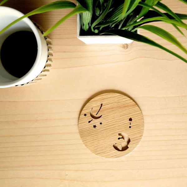 Made from a solid slice of natural oak wood, this item is designed and hand-crafted in the UAE using sustainably sourced timber.